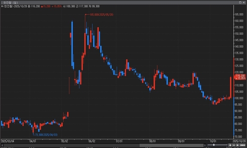 이날 주가 급등은 대주주 지분 변동 등 주가에 영향을 미칠 만한 특별한 공시가 없는 상황에서 나타났다.