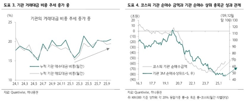 기관들은 ▲반도체 중심의 실적 개선 ▲배당 확대 등 증시 환경 변화 ▲상장지수펀드(ETF) 시장 성장 등을 배경으로 순매수 기조를 강화하고 있다. 최대 기관인 국민연금의 매도 압력까지 해소된다면 '기관 주도 장세'가 본격화될 수 있다는 기대감이 커진다.