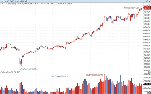 상하이 지수가 4,000선을 돌파 마감한 것은 2015년 8월 이후 10년여만이다.