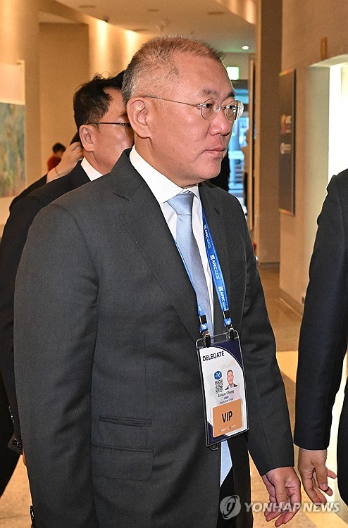 총수 중에서 특히, 정의선 현대차그룹 회장의 표정이 매우 상기된 듯 보였다.