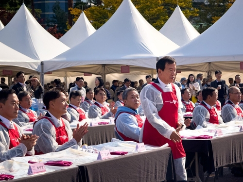 (서울=연합인포맥스) ○…쌀쌀해진 서울 여의도 공원. 금융투자협회가 주최하는 제15회 사랑의 김치 페어가 열렸다. 85개사 1천여 명의 금융투자업계 임직원이 참여해 역대 최대 규모를 자랑했지만 현장의 관심은 붉은 김치만큼이나 차기 금융투자협회장 선거로 뜨거웠다.