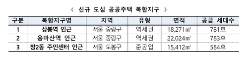 (서울=연합인포맥스) 한종화 기자 = 국토교통부가 상봉역, 용마산역, 창2동 주민센터 등 총 3곳 2천148호를 도심 공공주택 복합지구로 지정한다고 30일 밝혔다.
