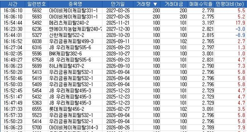 내년 9월 만기인 우리금융캐피탈채도 민평금리보다 5.8bp 높은 수준에 400억원 거래가 이뤄졌다.