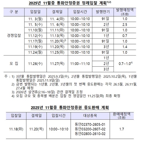 경쟁입찰 발행 예정액은 8조6천억원, 모집 발행예정액은 7천억~1조원이다.