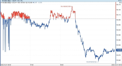 연합인포맥스 통화별 현재가(화면번호 6416)에 따르면 오전 8시58분 현재 달러-엔 환율은 전일 대비 0.13% 내린 153.890엔에 거래됐다.