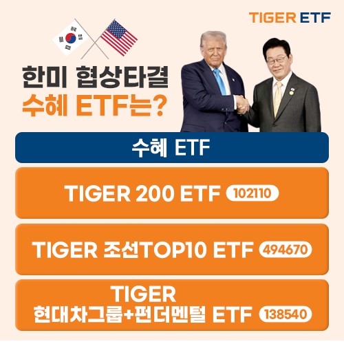미래에셋운용은 31일 ▲TIGER 200 ETF ▲TIGER 조선TOP10 ETF ▲TIGER 현대차그룹+펀더멘털 등을 온라인카지노 후기 벳엔드 타결 수혜 ETF로 꼽았다.