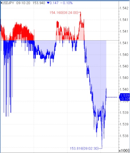 달러-엔 환율은 154엔을 웃돌다 하락했다.
