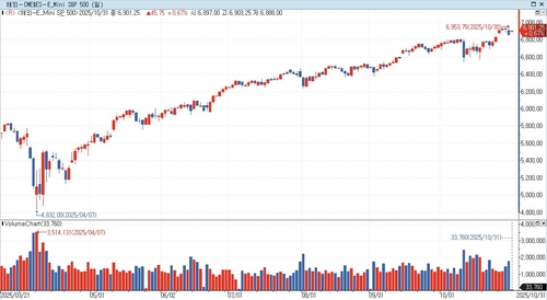 연합인포맥스 지수선물 통합화면(화면번호 6520)에 따르면 한국 시각으로 오전 10시50분 기준 E-미니 S&P500 지수 선물은 전장 대비 0.67% 오른 6,901.25에 거래됐다.