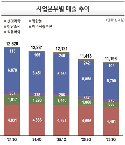 첨단소재 부문은 매출액 8천382억원, 영업이익 73억원을 올렸다. 전지재료 출하량 감소가 컸다. 4분기에도 추가적인 매출액 감소가 관측됐다.