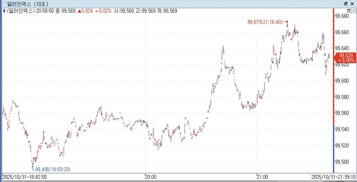 연합인포맥스(화면번호 6411)에 따르면 31일 오전 8시 36분께 현재(이하 미 동부시간) 뉴욕 외환시장에서 주요 6개 통화에 대한 달러 가치를 반영하는 달러인덱스(DXY)는 99.653으로 전장 마감 가격(99.550)보다 0.103포인트(0.103%) 올라갔다.