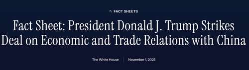 백악관에 따르면 중국은 지난 10월 9일 발표한 희토류 수출통제와 관련 조치의 시행을 전 세계적으로 중단하기로 했다.