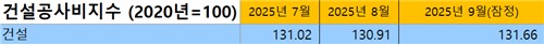 3일 한국건설기술연구원에 따르면 9월 온라인카지노 바로가기비지수는 131.66으로 집계됐다. 온라인카지노 바로가기비지수는 2020년을 100으로 기준 삼고 건설공사비 변동을 나타내는 지수다.