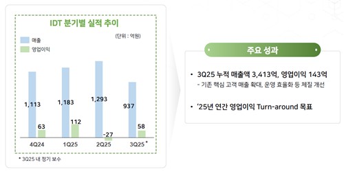 온라인카지노 쿠폰바이오사이언스는 지난해 인수한 독일의 백신 위탁생산기업 IDT바이오로지카(IDT)의 3분기 누적 매출액은 3천413억 원, 영업이익은 143억 원이라고 설명했다. 기존 핵심 고객 매출 확대 및 운영 효율화 등 체질 개선 영향이라고 덧붙였다. 회사는 올해 연간 영업이익 턴어라운드를 목표하고 있다.