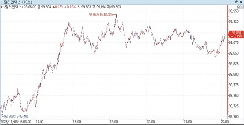 연합인포맥스(화면번호 6411)에 따르면 3일 오전 8시 3분께 현재(이하 미 동부시간) 뉴욕 외환시장에서 주요 6개 통화에 대한 달러 가치를 반영하는 달러인덱스(DXY)는 99.881로 전장 마감 가격(99.811)보다 0.070포인트(0.070%) 올라갔다.