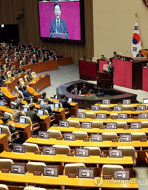 지난 6월, 추가경정예산안 편성을 위해 같은 자리에 선 지 약 4개월 만의 두 번째 시정연설이다.