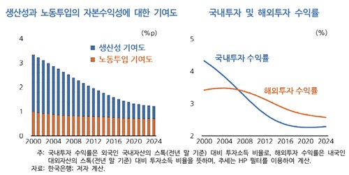 쉽게 말해 생산성 둔화는 직접적으로 GDP를 감소시킬 뿐 아니라 국내 자본스톡 감소를 유발해 GDP에 대한 부정적 영향이 1.5배 증폭될 수 있다는 의미다.