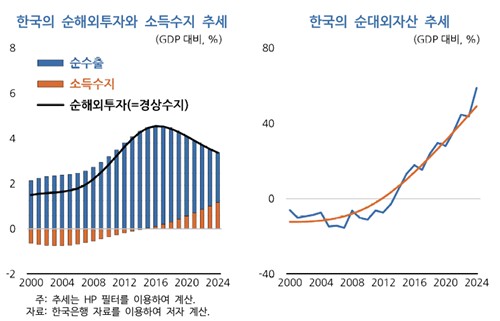 국민소득 대비 순해외카지노커뮤니티 비중은 2000~2008년 0.7%에서 2015~2024년 4.1%로 6배 정도 증가했다.