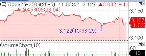 국고채 10년 지표물인 25-5호는 전 거래일 대비 3.7bp 오른 3.132%로 개장했다.