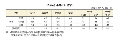 (서울=연합인포맥스) 변명섭 기자 = 내년에 전세가가 4.0% 올라 5년 만에 최고 상승률을 보이며 임대차 시장의 어려움이 심화할 것이라는 전망이 나왔다.