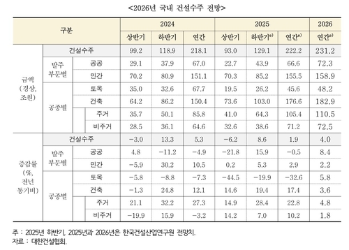 한국건설산업연구원은 4일 강남구 건설회관에서 '2026년 건설·자재·부동산 경기전망 및 시장 안정·지속가능성 확보 세미나'를 개최하고 이같이 전망했다.