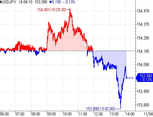 달러-엔 환율은 이날 오후 153.80엔까지 떨어졌지만, 다카이치 총리 발언에 낙폭을 축소하며 오후 2시4분 현재 전장보다 0.13% 밀린 153.99엔에 거래됐다.