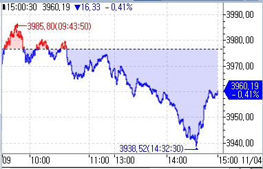 연합인포맥스 세계주가지수(화면번호 6511)에 따르면 이날 상하이종합지수는 16.33포인트(0.41%) 내린 3,960.19, 선전종합지수는 33.84포인트(1.34%) 하락한 2,486.78에 각각 장을 마감했다.