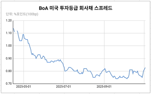 투자등급 스프레드는 앞서 지난달 초순에는 74bp까지 하락하며 지난 1998년 7월 이후 27년여 만의 최저치를 기록했었다.