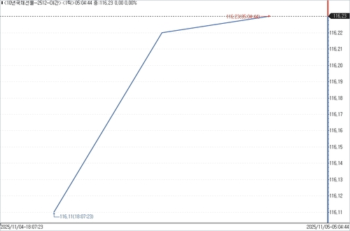 10년 국채선물은 15틱 상승한 116.23에 마감됐다. 외국인은 5계약 순매수했고, 개인은 5계약 순매도했다.