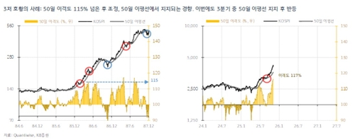 이은택 KB증권 연구원은 5일 "1986년 4월 조정이 지금과 유사했다"며 "7~8월 조정에 이어 이번에도 3저 호황 때와 같은 곳에서 조정이 나왔다"고 말했다.