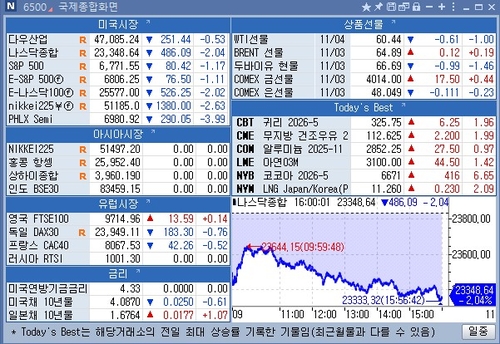 인공지능(AI) 고평가 우려에 기술주를 중심으로 매물이 쏟아졌고 차익실현 수요도 커지면서 안전자산 선호 분위기가 우세.