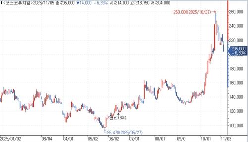 (세종=연합인포맥스) 윤은별 기자 = 포스코퓨처엠[003670]의 주가가 한 달 사이 70% 가까이 급등한 수준에 고점을 기록하는 등 그간의 길었던 부진을 만회하려는 모습이다.