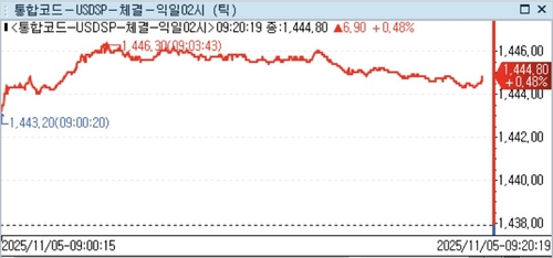 이날 달러-원 환율은 전일 정규장 마감가 대비 5.60원 오른 1,443.00원에 출발한 후 가파르게 상승폭을 키웠다.