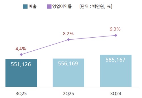 전년 동기 대비 매출은 5.8%, 영업이익은 55.7% 줄었다.
