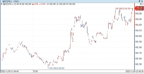 연합인포맥스(화면번호 6411)에 따르면 5일 오전 8시 40분 현재(이하 미 동부시간) 뉴욕 외환시장에서 주요 6개 통화에 대한 달러 가치를 반영하는 달러인덱스(DXY)는 100.219로 전장 마감 가격(100.215)보다 0.004포인트(0.004%) 올라갔다.