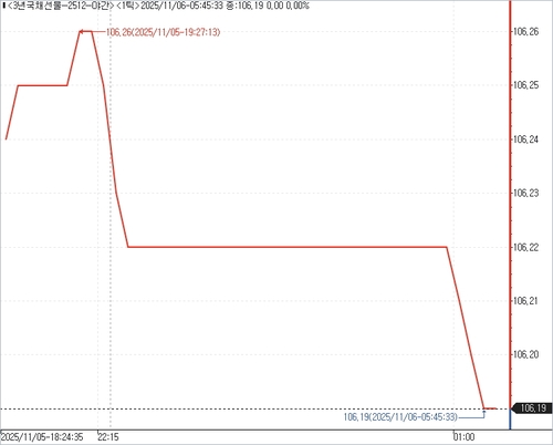 6일 서울채권시장에 따르면 3년 온라인카지노 경찰 벳무브은 야간 거래에서 전일 주간 거래 종가 대비 5틱 하락한 106.19에 마감됐다. 외국인이 75계약 순매수한 가운데 금융투자와 개인은 각각 62계약 및 13계약 순매도했다.
