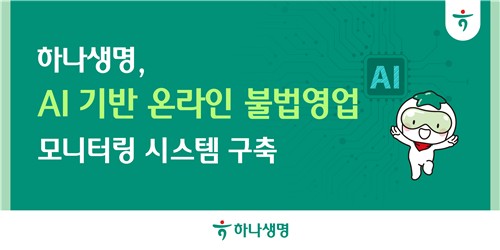 (서울=연합인포맥스) 이윤구 기자 = 하나생명은 블로그와 카페, 각종 SNS 등 온라인상에서 이뤄지는 불법 보험영업 행위를 자동으로 탐지하고 대응하는 'AI 기반 불법영업 모니터링' 시스템을 운영하고 있다고 6일 밝혔다.