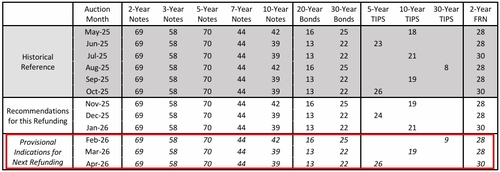 TBAC는 다만 "위원회는 향후 이표채 발행의 변화 가능성과 그 시점에 대해 논의했다"면서 "위원회는 현재 전망이 2027회계연도에 이표채 발행 증가를 타당화할 수 있다고 믿는다"고 밝혔다. 미국 정부의 2027회계연도는 내년 10월부터 시작된다.