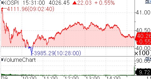 코스피 4.026.45 마감…4,111선까지 올랐다 3,985선까지 밀리기도