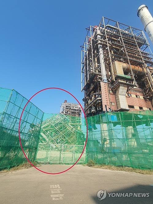 발파를 위해 보일러 구조물을 절단해 사전 취약화 작업을 진행하던 중 구조물이 붕괴했다.