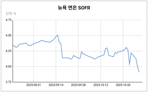 6일(현지시간) SOFR을 산출하는 뉴욕 연방준비은행에 따르면, 최신 데이터인 5일 기준 SOFR은 3.91%로 전일대비 9bp 급락한 것으로 집계됐다. 11월 들어서는 31bp나 낮아졌다.