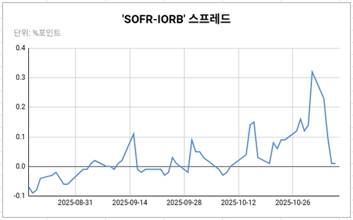 5일 기준 SOFR-IORB 스프레드는 1bp로, 지난달 20일 이후 최저치다. 여전히 IORB를 웃돌고 있지만 그 폭이 크게 축소된 셈이다.