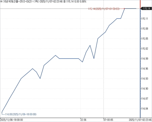 7일 서울채권시장에 따르면 3년 국채선물은 야간 거래에서 전일 주간 거래 종가 대비 11틱 오른 106.12에 마감됐다. 외국인이 321계약 순매수한 가운데 금융투자와 개인은 각각 201계약 및 120계약 순매도했다.