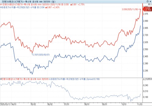 한전채가 단번에 발행 스프레드를 두 자릿수로 높인 것은 물론 금리 또한 3%대에 진입한 것이다.