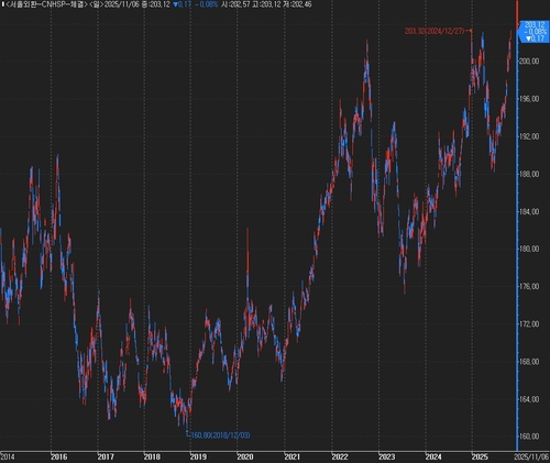 지난 4월 초와 지난해 12월 말 203원을 웃돌았지만 당시에는 장중 오름폭을 반납해 203원 아래에서 종가를 형성했다.