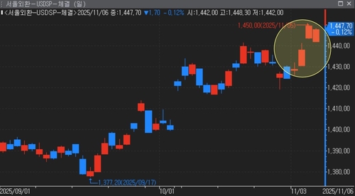 같은 기간 달러-원 환율은 정규장 종가 기준 지난 3일(1,428.80원)부터 6일(1,447.70원)까지 18.90원 상승했다.