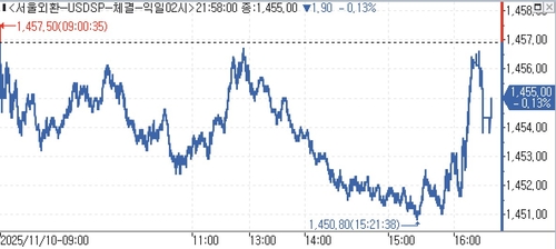 (서울=연합인포맥스) 윤정원 기자 = 달러-원 환율이 뉴욕장에서 1,450원 중반대에서 거래됐다.