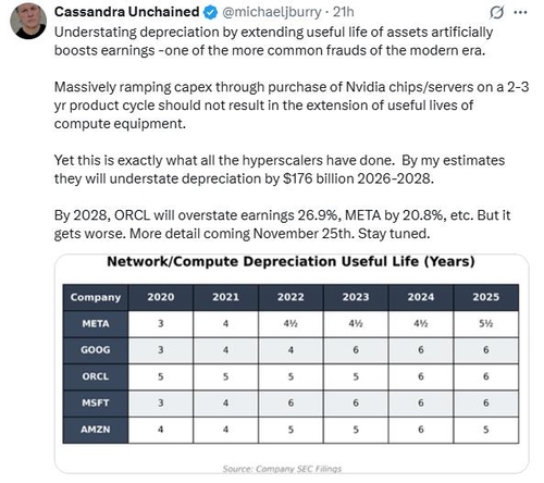 버리는 "자산의 내용연수를 인위적으로 연장해 감가상각비를 축소하는 것은 현대 회계에서 가장 흔한 '이익 부풀리기' 수법 중 하나"라며 "2~3년의 제품 주기로 엔비디아 칩과 서버 구입을 통해 자본 지출을 대폭 늘리는 것이 컴퓨팅 장비의 유효 수명 연장으로 이어져선 안 된다"고 꼬집었다.