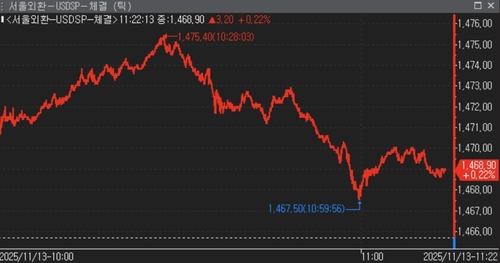 13일 서울 외환시장에서 온라인카지노 주소원 환율은 오전 11시22분 현재 전장대비 3.20원 상승한 1,468.90원에 거래됐다.