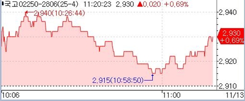 (서울=연합인포맥스) 노현우 기자 = 국고채 금리가 13일 오전 중단기 중심으로 상승했다.