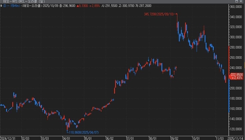 오라클 주가는 지난 1년 동안 150달러에서 350달러 부근까지 올랐다가 220달러대로 되돌아갔다.